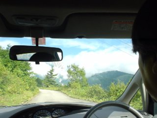 | 車で途中まで登れます。でもガードレールのない細い山道でとっても怖〜い。やっぱり今回の旅行は怖い系だぁ。お盆だし。 |